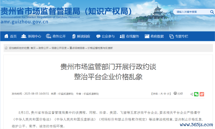 据贵州省市集监督责罚局(贵州省学问产权局)价监反把持处发布的音讯,8月5日,贵州省市集监督责罚局集中约谈携程、同程、抖音、好意思团、飞猪等五家涉旅平台企业,条件干系平台企业严格顺从《中华东谈主民共和国价钱法》《中华东谈主民共和国反把持法》《明码标价和辞谢价钱讹诈法律默契》等法律法例轨则,执意制止价钱乱象,疗养刚正、有序、诚信的市集环境。