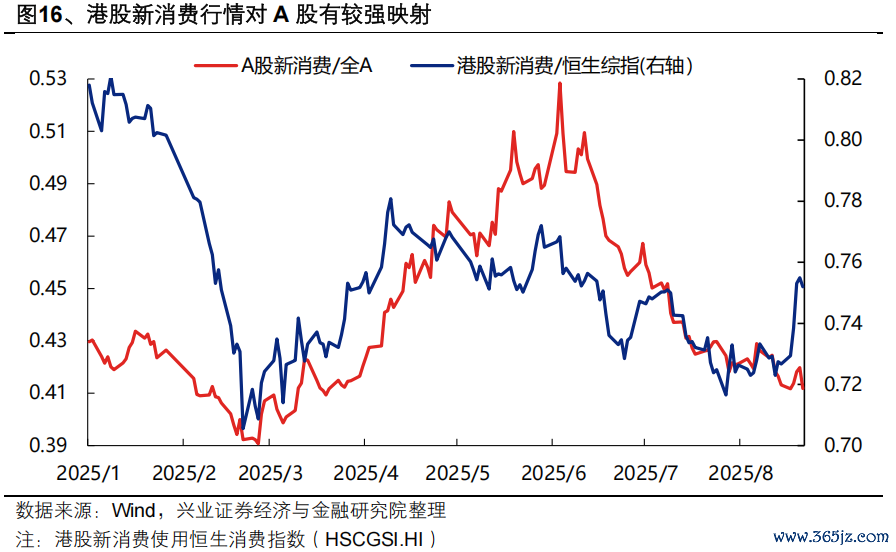 同期,跟着泡泡玛突出新虚耗龙头发布中报盈喜,近期港股新虚耗已在大幅跑赢,有望对A股形成映射。