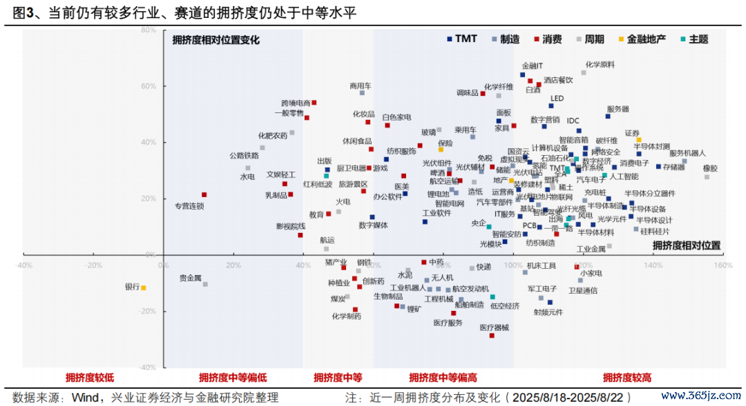 咱们曾详细本轮“健康牛”的结构特征:指数在科技成长干线的引颈下握续改进高,因此阛阓并莫得举座过热,无数行业拥堵度仍在中等区间,而且仍有一些板块处在拥堵度较低的位置。