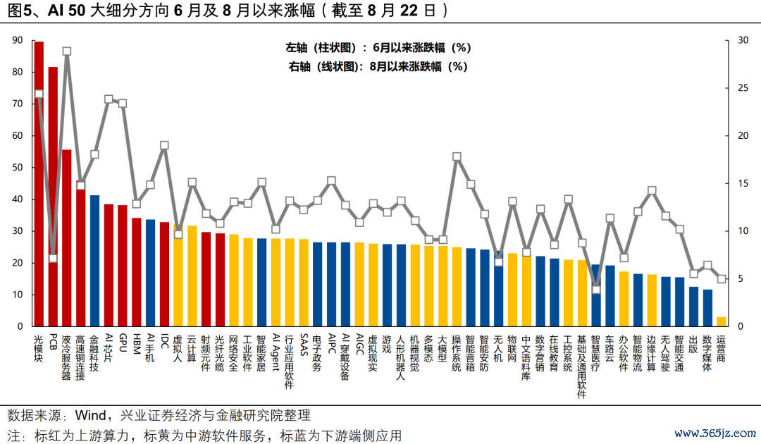 7月下旬以来,咱们基于股价位置、后续催化等维度,反复提醒AI干线里面向国产算力和中卑劣端侧诈欺的扩散。8月以来,咱们依然看到AI行情从前期国外算力的“轶群出众”,向国产算力、中卑劣软件诈欺等低位场所握续轮动、扩散,尤其是本周五国产算力的大涨,进一步标记着AI干线进入国产生态的扩散阶段。